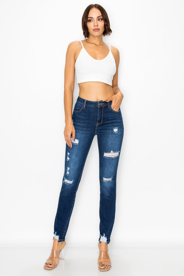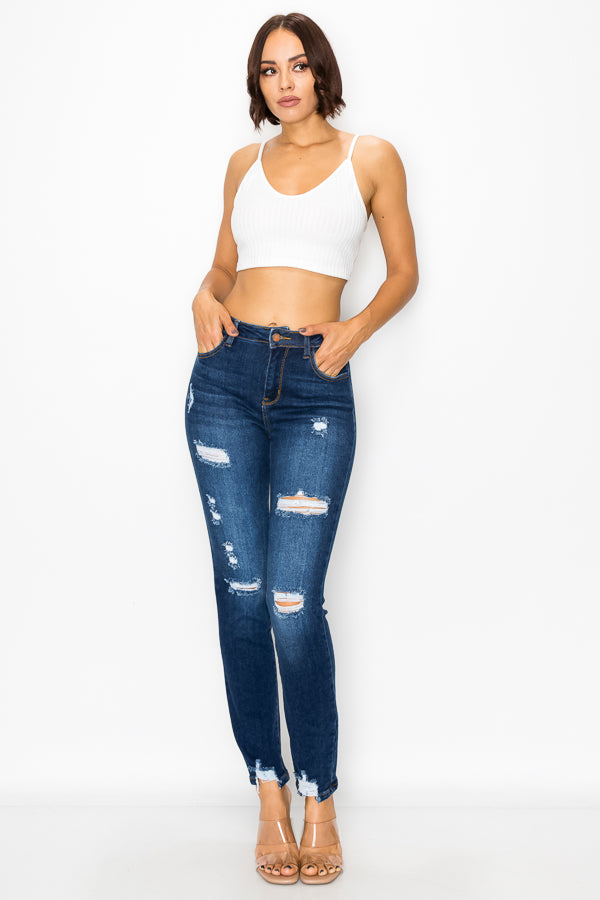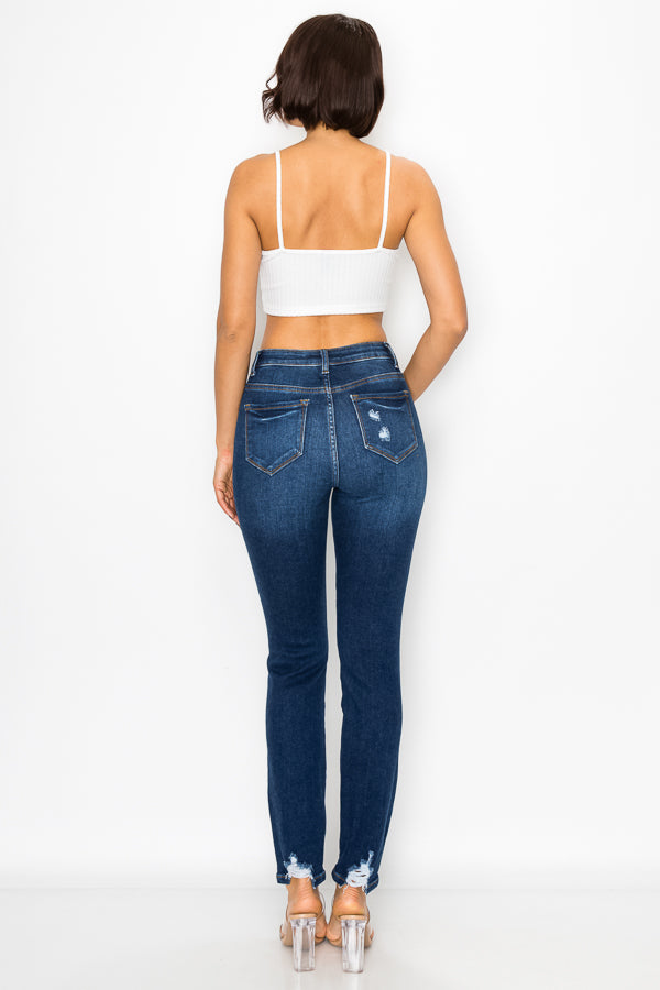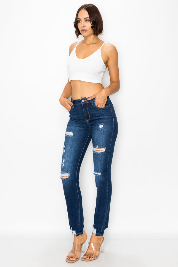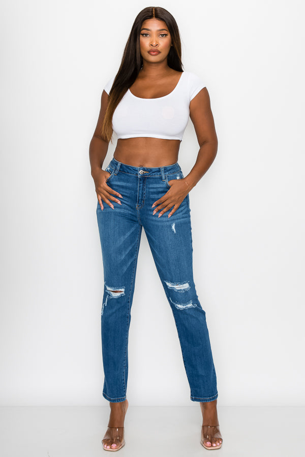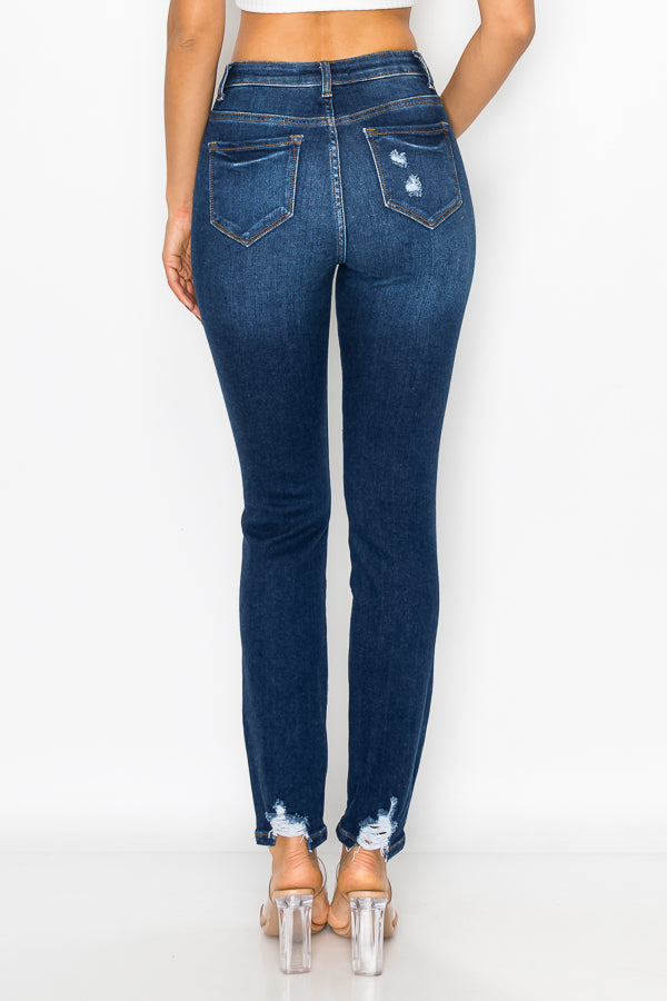 Women's destructed high rise stretch straight leg