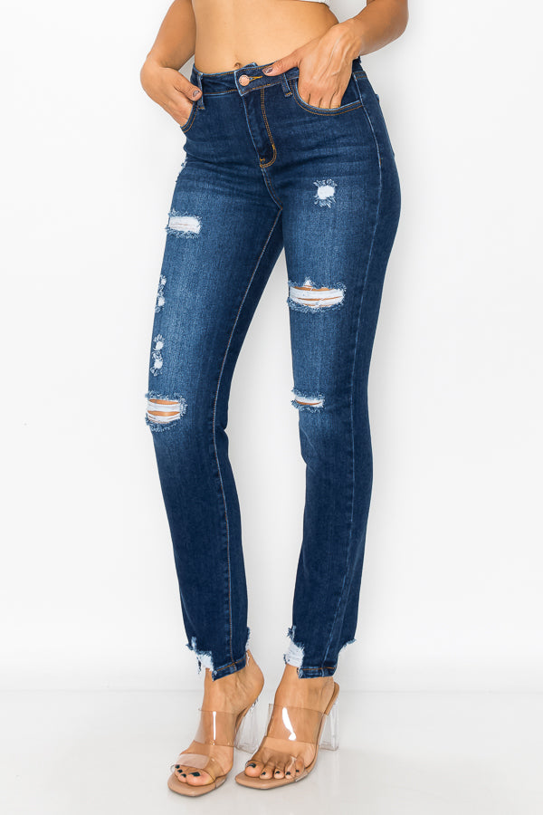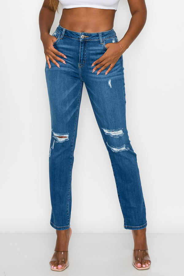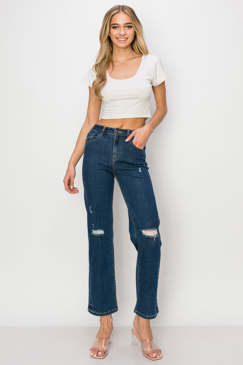 Angie - High Rise Destructed Straight Leg