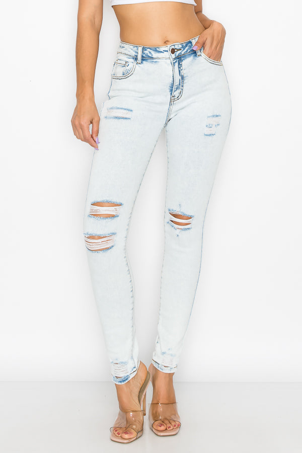 Brooklyn - Acid Wash High Rise Destructed Premium Skinny