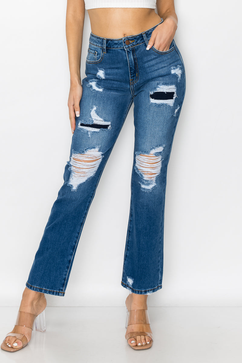 Kelsey - High Rise Patch Destroyed Straight Leg