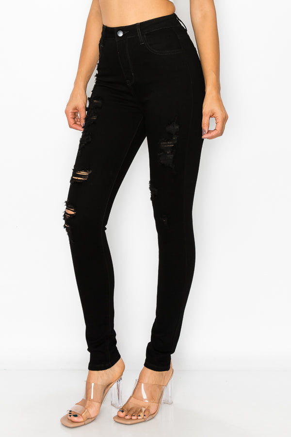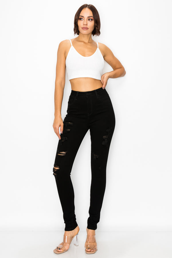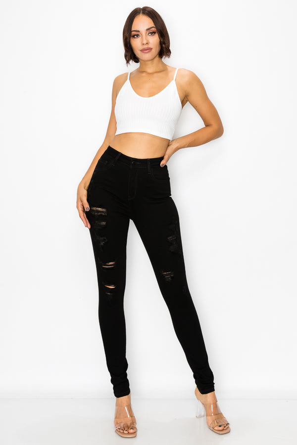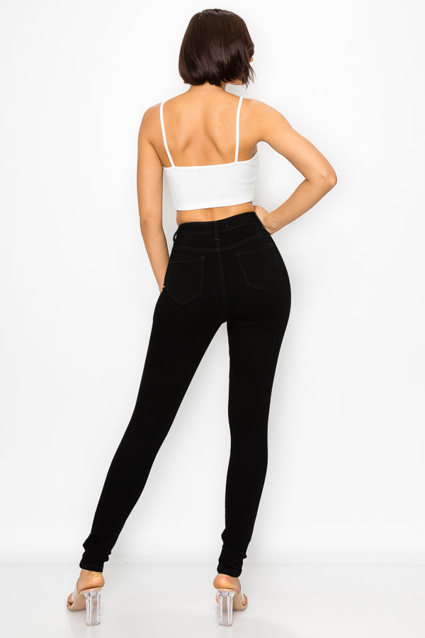 Preto: 50% algodão, 25% poliéster, 23% seda artificial, 2% spandex